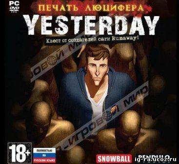 Нью-Йорк, 2011 год. Кому есть дело до погибших бездомных? Неужели никому, даже если их убивают какие-то психи? Никому… Кроме Генри Уайта, интеллигентного юноши, наследника одного из самых крупных состояний в Америке. Однажды, помогая нищим, прозябающим на заброшенной станции метро, молодой человек попал в серьезный переплет и угодил в плен к бродягам, одержимым идеями испанской инквизиции. Интересно, не тех ли самых убийц отыскал Генри?... Знаменитая студия Pendulo, уже почти два десятилетия талантливо развлекающая публику юмористическими квестами, на этот раз выступила в новом амплуа, создав мрачный психологический триллер с мистическим уклоном «Yesterday: Печать Люцифера». Вы возьмете под контроль стразу трех персонажей и вместе с ними побываете в Америке, Европе, Азии, где, конечно, вам придется немало поломать голову над хитроумными загадками. Алхимия, сатанизм, Ватикан, Y-образные шрамы — какое уж тут веселье: все необычайно мрачно, но традиционно интригующе. Будьте готовы к неожиданностям. Взгляните своим страхам в лицо. Выясните, кто же вы и что вы сделали… Вчера.
